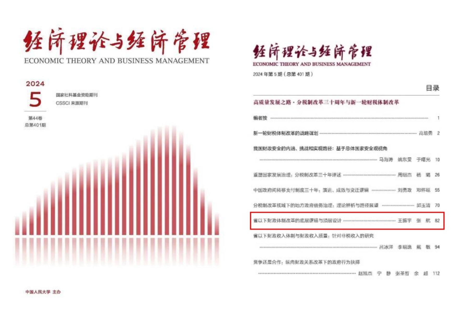国产一区二区日本在线经济学院王振宇教授与博士研究生张航合作撰写的论文《省以下财政体制改革的底层逻辑与顶层设计》在《经济理论与经济管理》2024年第5期发表。